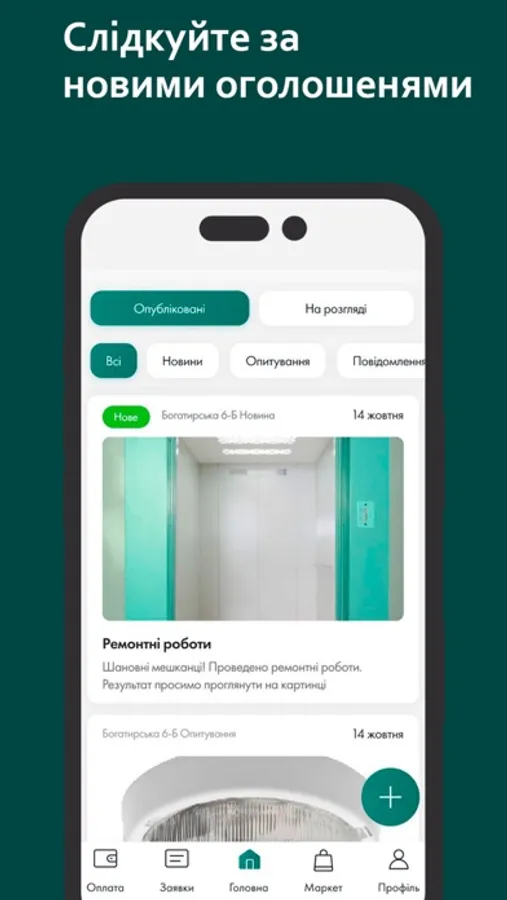 * Отримання термінових повідомлень від ОСББ/Управляючої компанії;