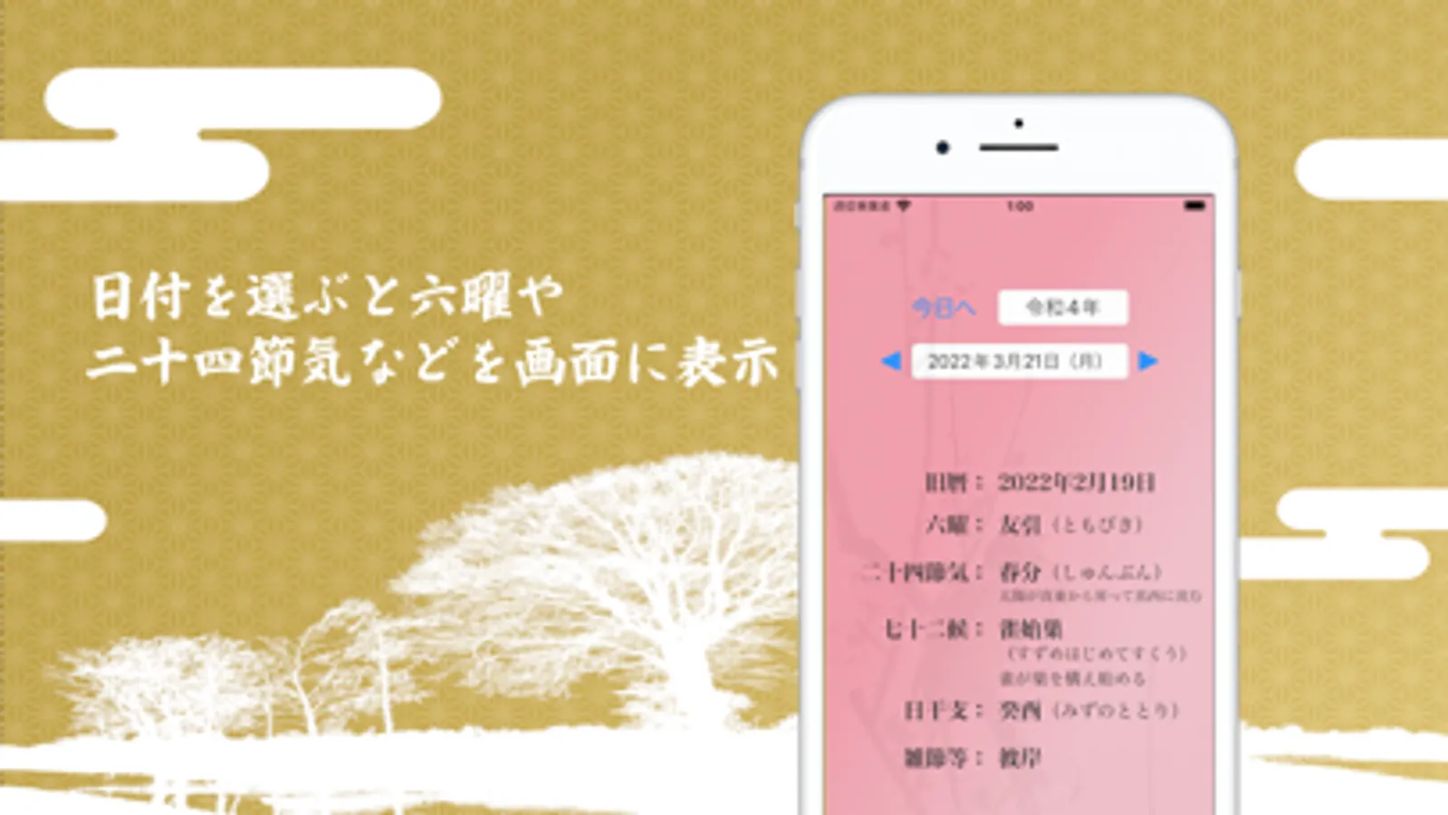 『旧暦パネル』は、季節感あふれる日本の暦を表示するアプリです。