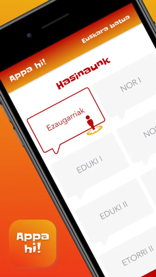 Hizkuntzaren alderdi bat praktikatzeko aplikazioa da Appa hi!, baina lasai, betiere alderdi ludikotik abiatuta. Hitanoaren alderdi teorikoa eta aditz-taulak ere aurkeztuko dizkizugu, baina ikasketa prozesuaren funtsa galdera-erantzun estiloko jokoa da. Euskaldun guztiei eskainia, gazte zein adineko, euskara-maila edozein dela ere. Doakoa da eta Apple telefonoetarako dago eskuragarri. Deskargatu, eta hasi jokatzen!