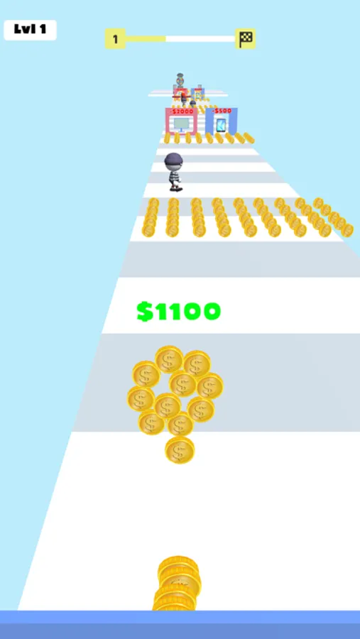Collect more and increase your purchasing power by passing through the gates. At the end of the game, what you buy will be with you.