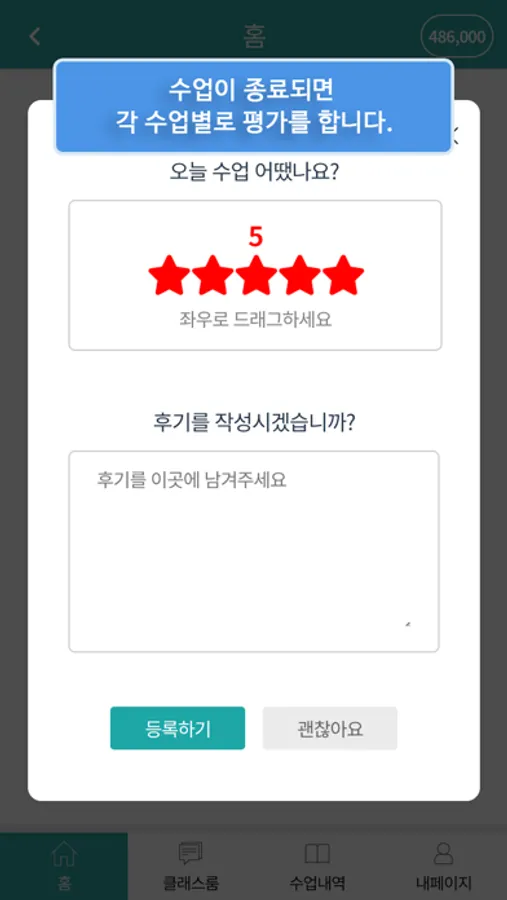 - 수업 후 학습내용과 교사에 대한 후기를 작성할 수 있습니다.