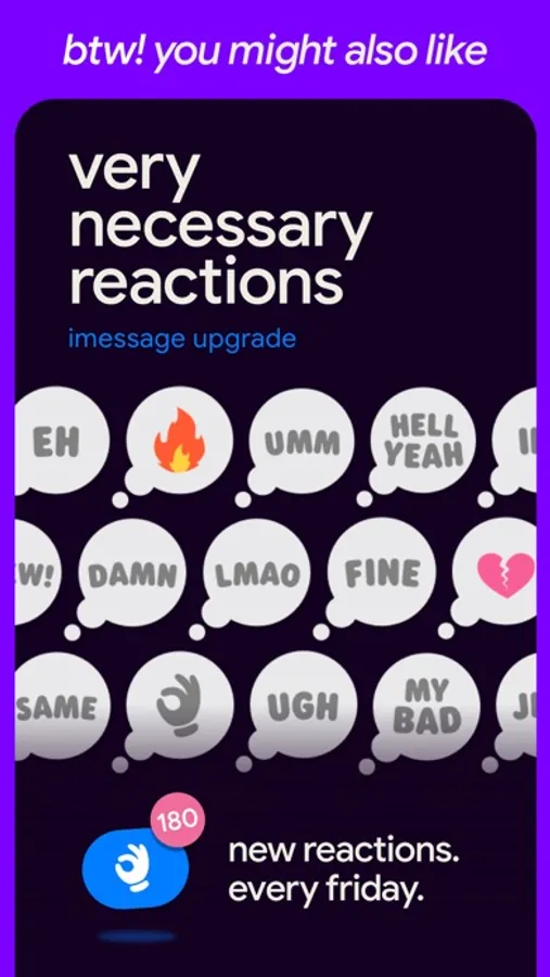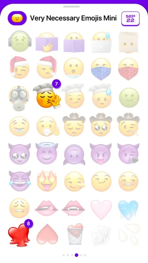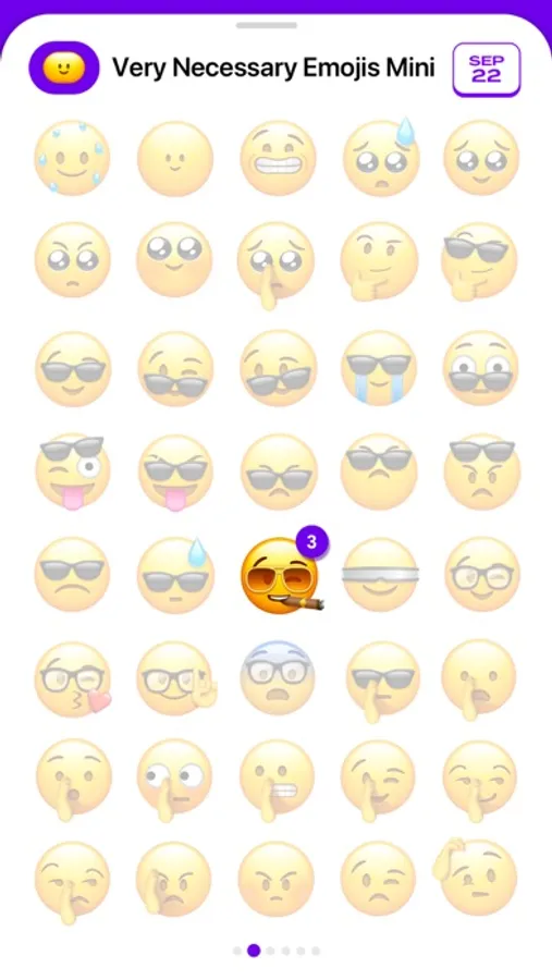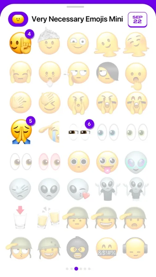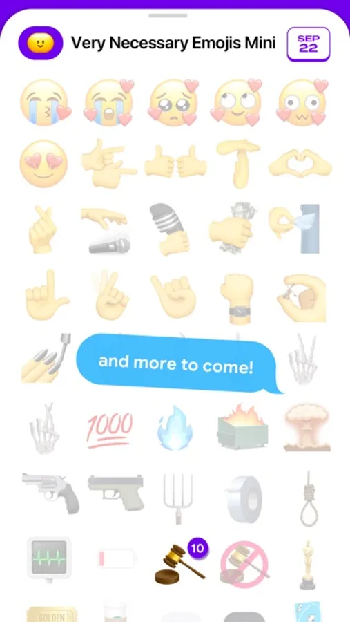Very Necessary Emojis Mini is a free assorted sampler of the original ever-expanding sticker pack, made for those who want to try it first and see how they like it. You can try ten different emojis every week, so while you are limited to just ten at a time, you can still get a pretty good idea for how you'll use them when you get the full pack. And of course, if you've got an idea for a new Very Necessary Emoji, feel free to leave it in a review!