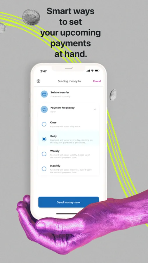 Make payments hassle-free to your Swinto friends and relatives, also receive payments with ease, whenever and wherever.