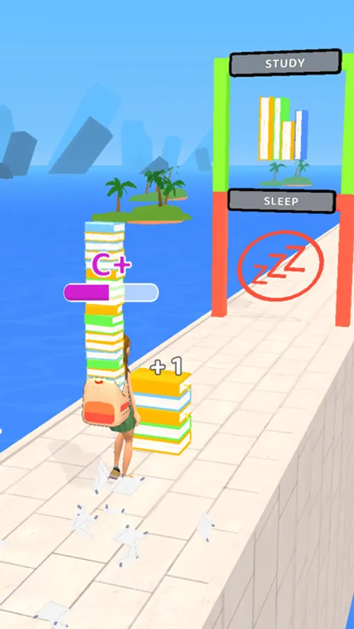 The more book you collect, your grade will be higher. Avoid harmful items such as phone or pillow which will make your grade lower and it will be impossible to complete level.