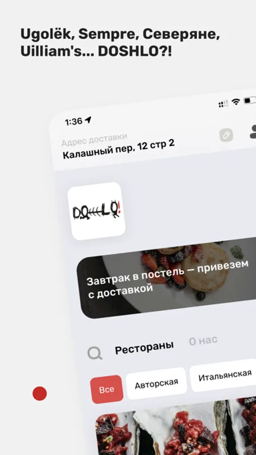 Ugolёk, Uilliam's, Северяне, Жирок, Sempre, Double Duck — теперь заказать доставку из ваших любимых ресторанов можно в одном приложении Doshlo. Культовый фермерский цыпленок из антикварной печи XIX века, итальянская паста из сердца Патриарших, легендарные сырники из топленой рикотты, воздушная гречка с пармезаном, покорившая москвичей, безупречные жирные хиты из сезонных продуктов, панна-котта в кокосе из настоящих джунглей, суши и роллы из-под ножа и настоящая пекинская утка.