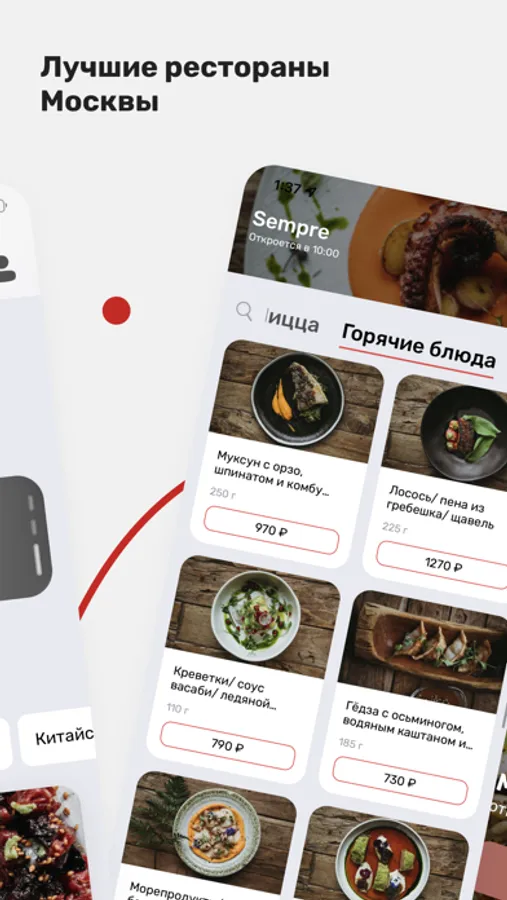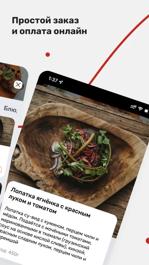 ● доступ к меню 6 ресторанов в одном приложении;