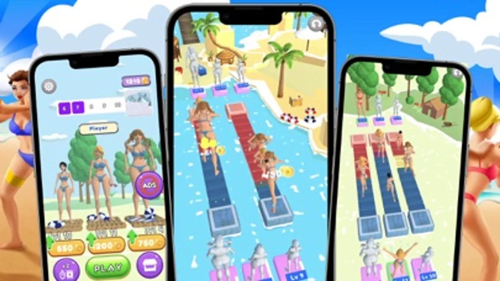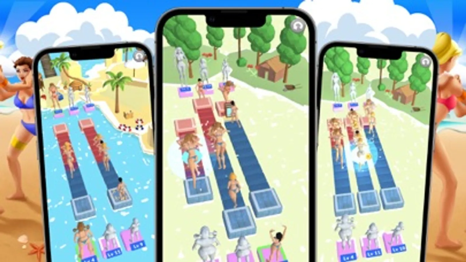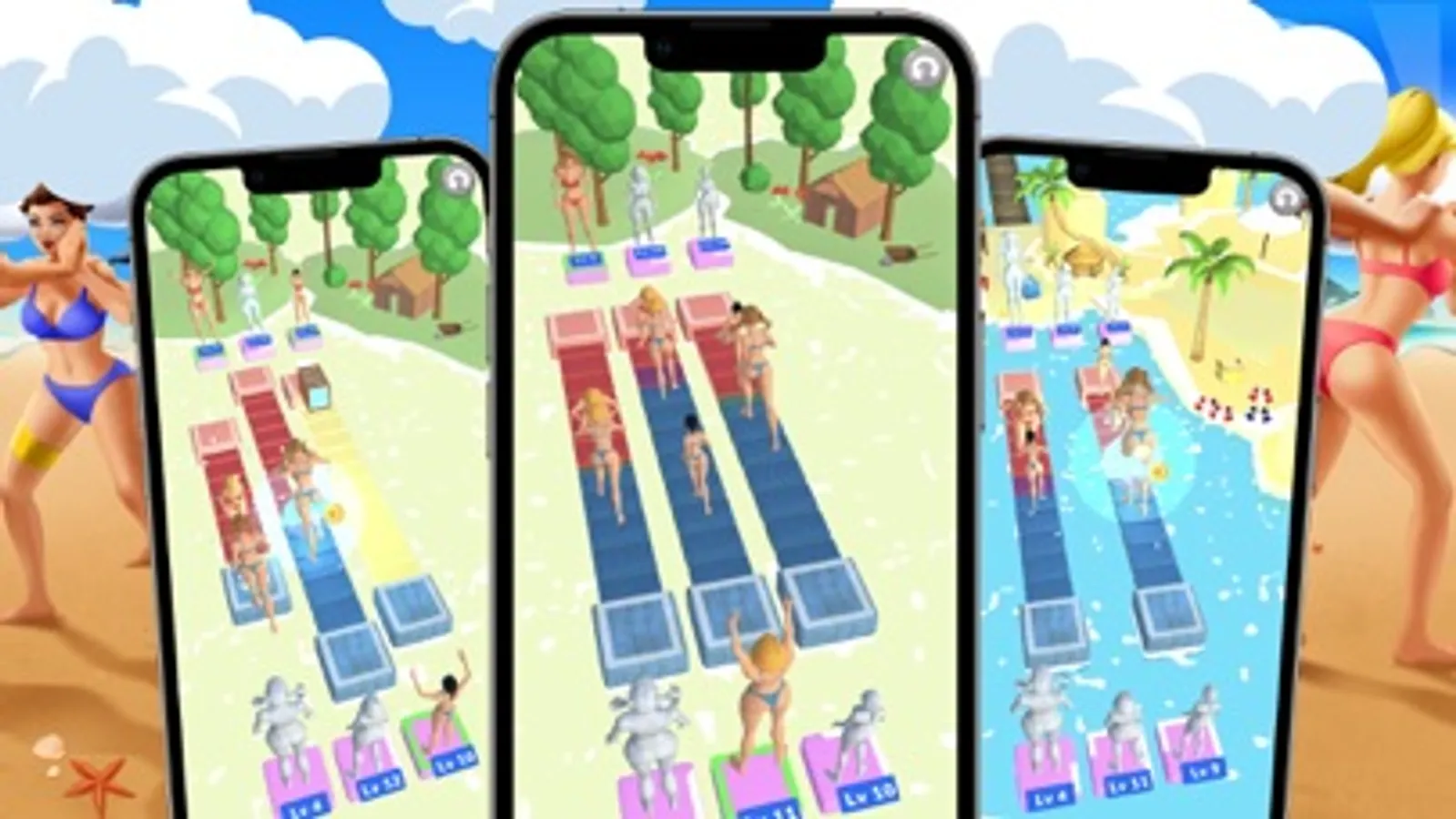 Choose from 3 different Bikini Girls and place them on track - the bigger the Pusher, the stronger the push - but also takes longer time to deploy - so choose and place them wisely!