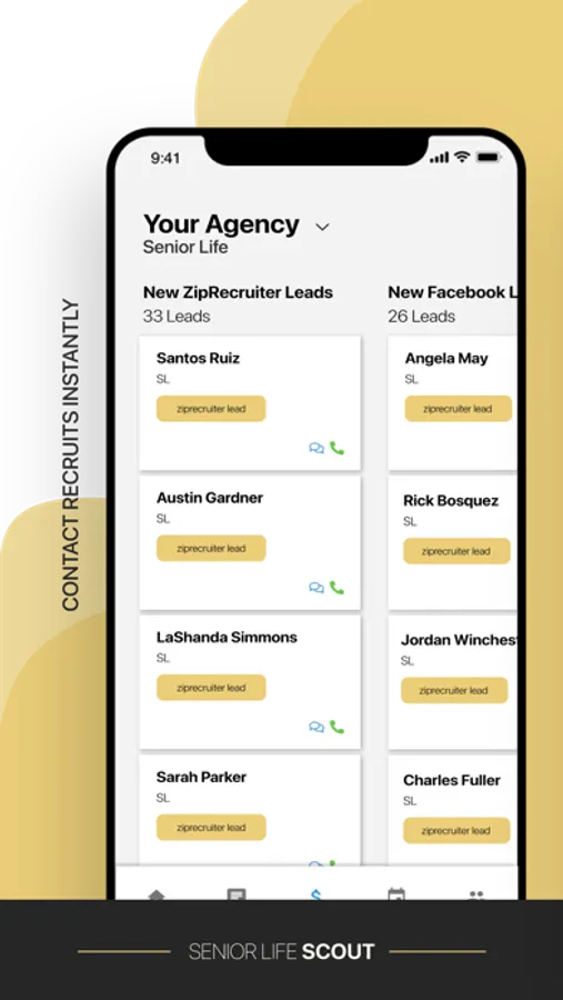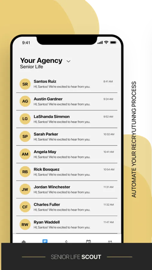 Senior Life Scout is an app to streamline the hiring process of new agents for hiring managers with Senior Life Insurance Company. Upon being imported into the app, contacts will be automatically messaged with emails and texts. Afterwards, the app will continue to facilitate communication between the hiring manager and their potential recruits. Agents will be given the ability to add these recruits to a variety of campaigns related to the hiring process and each campaign walks the potential recruit through our entire contracting process, from following up with the recruit immediately after they submit their application to the licensing process to actually being contracted.