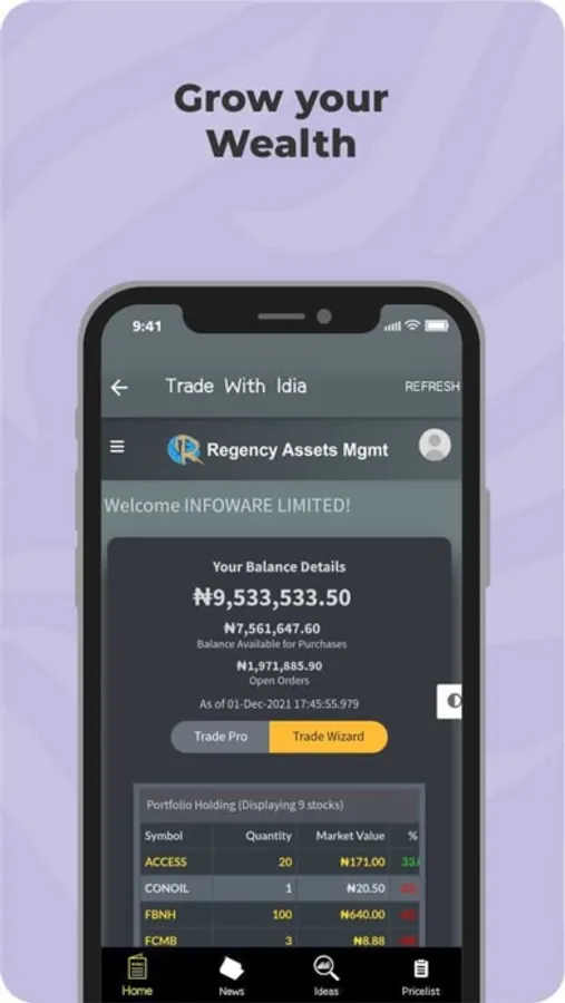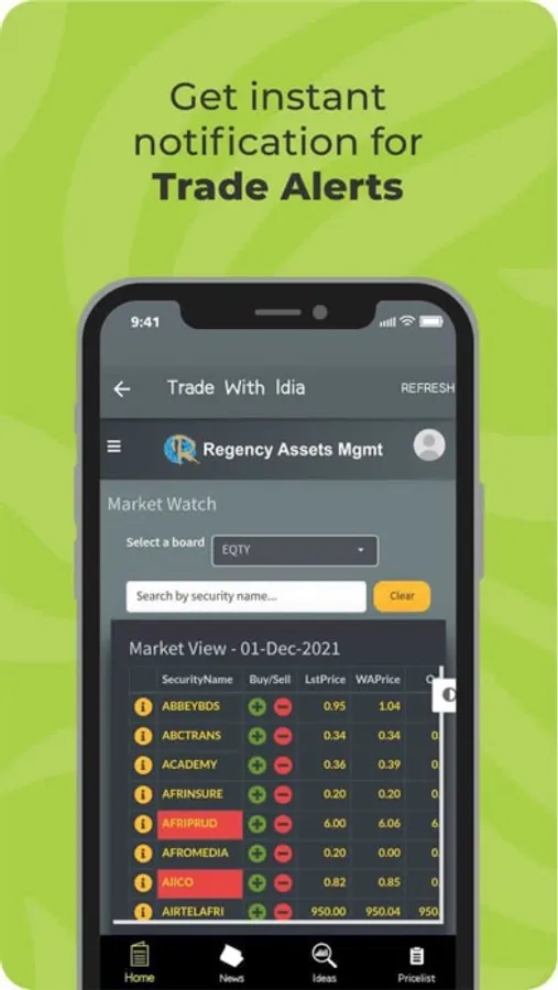 - Aside the user-focused features of the platform, IDIA Trader sends timely notifications – trade notifications, market news, market analyst reports, unusual volumes, dividend information and more, to enable users make informed decisions towards prosperity.