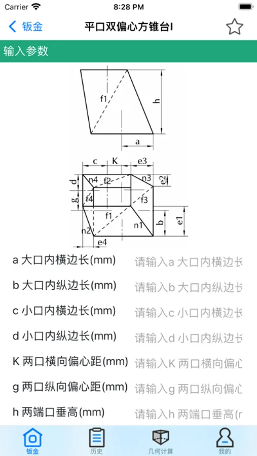 3.过渡条件指为求被展体各有关素线实长,又不能直接求出而必须要的中间辅助条件所列计算公式。