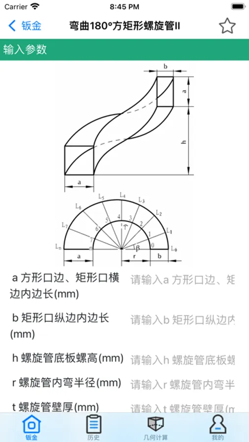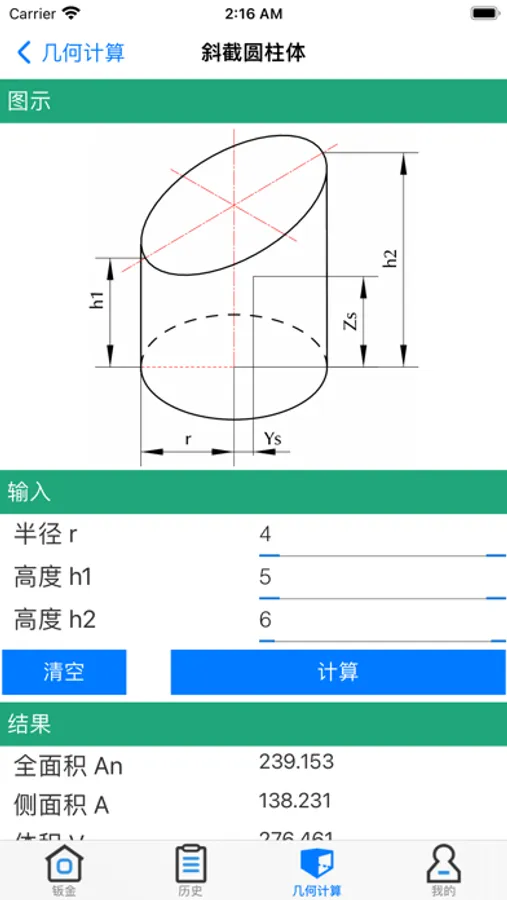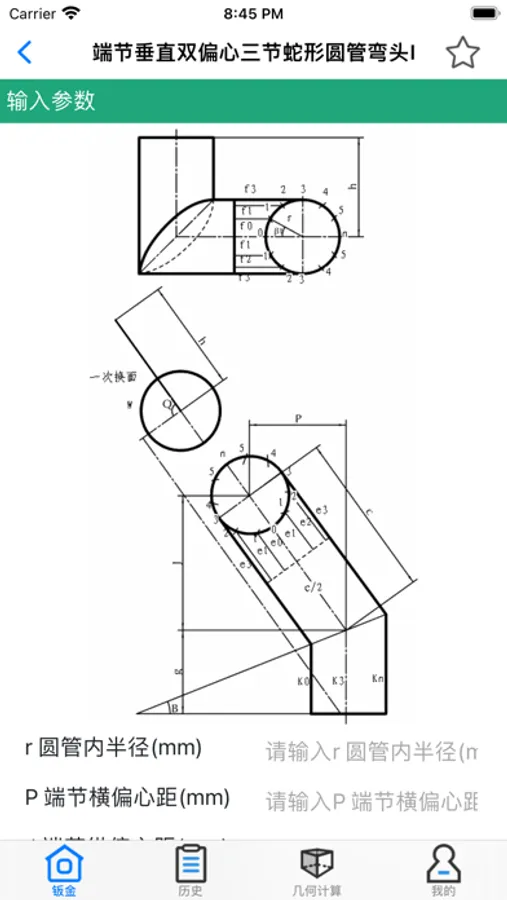 4.结果计算指为求被展体各有关素线实长,所列出的各相对应的计算公式。