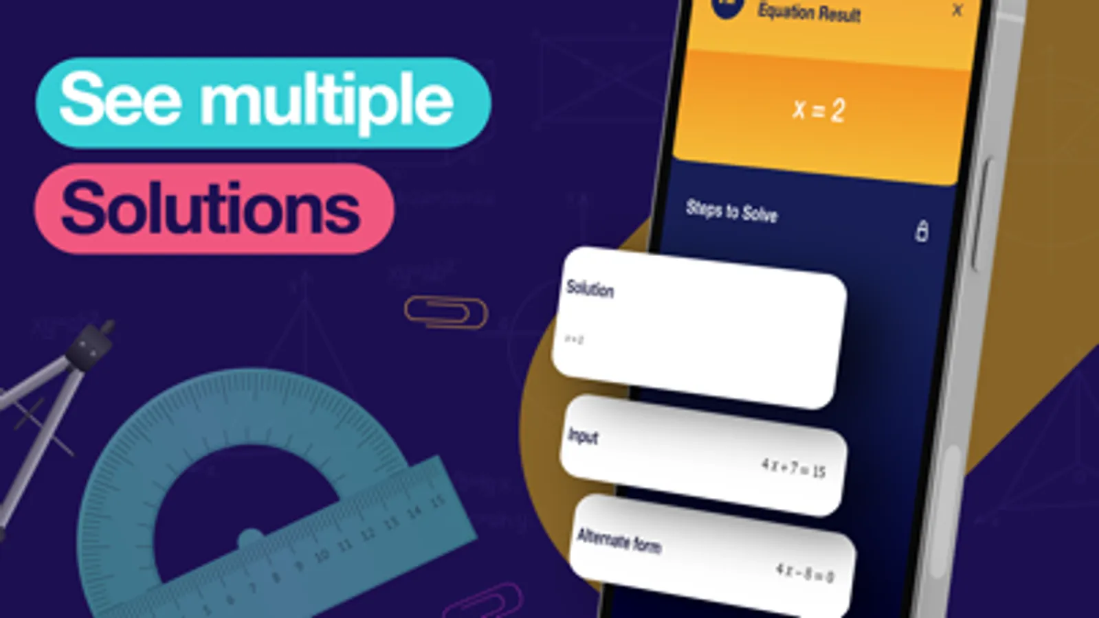 Homework Solver does math for you. Just snap a photo of a math problem and Homework Solver will display the answer on your screen. Our math solver supports algebra, geometry, statistics, calculus, derivates, and more. It can recognize handwritten problems and word problems too. Learn quickly and easily with step-by-step explanations to math answers so you can improve your math skills.
