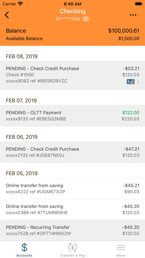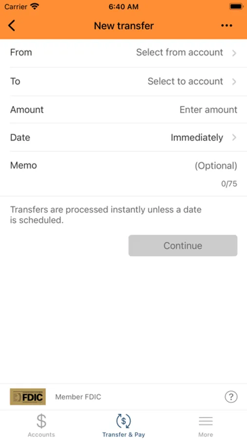 • Funds Transfer: Make transfers and view existing scheduled transfers.