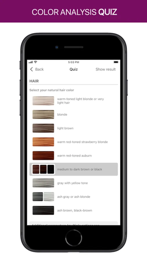 This app helps you choose the perfect color palettes for your wardrobe, outfits and makeup based on natural features like your skin tone, hair and eye color, also taking into account the fashion trends.