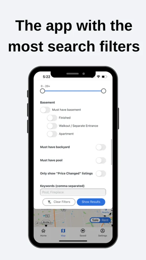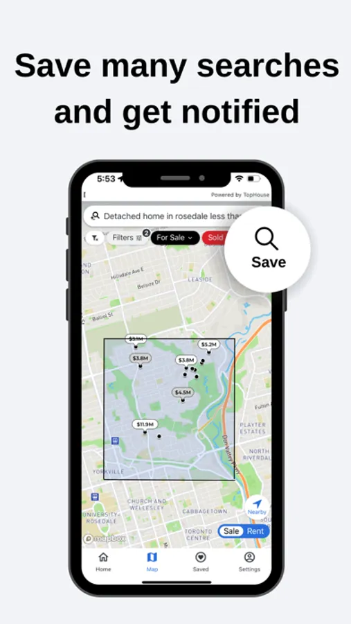• Save various searches, switch between saved search filters, and get notifications for homes that come on the market