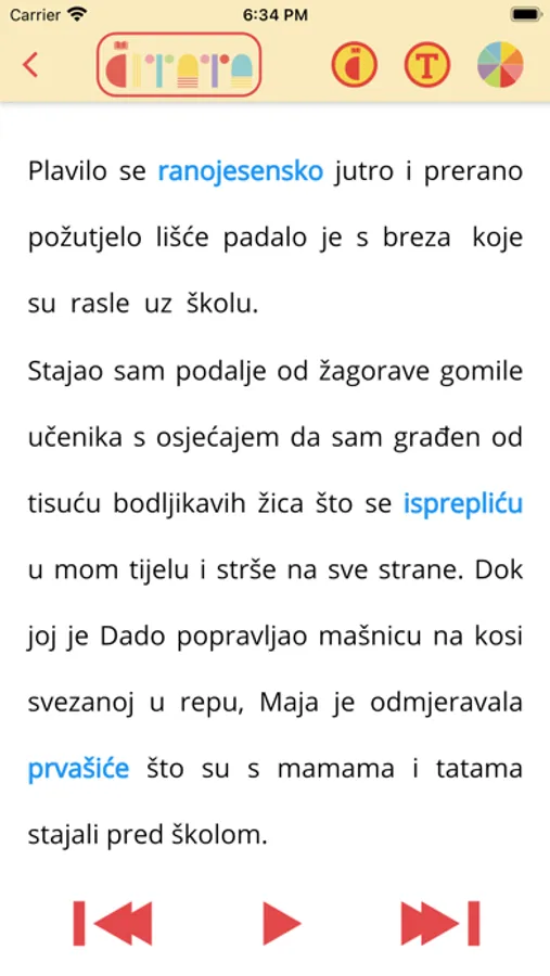 Sadržaj aplikacije je zvučno oblikovan s glumačkim glasovima i dodatnim zvučnim funkcijama. Ono što ju čini atraktivnom i drugačijom od obične audio knjige je što dok se izabrani sadržaj istovremeno sluša interpretiran ljudskim glasom (audio book) i čita kao e-knjiga, rečenice se automatski označavaju bojom zbog uočljivosti, preglednosti i fokusiranosti.