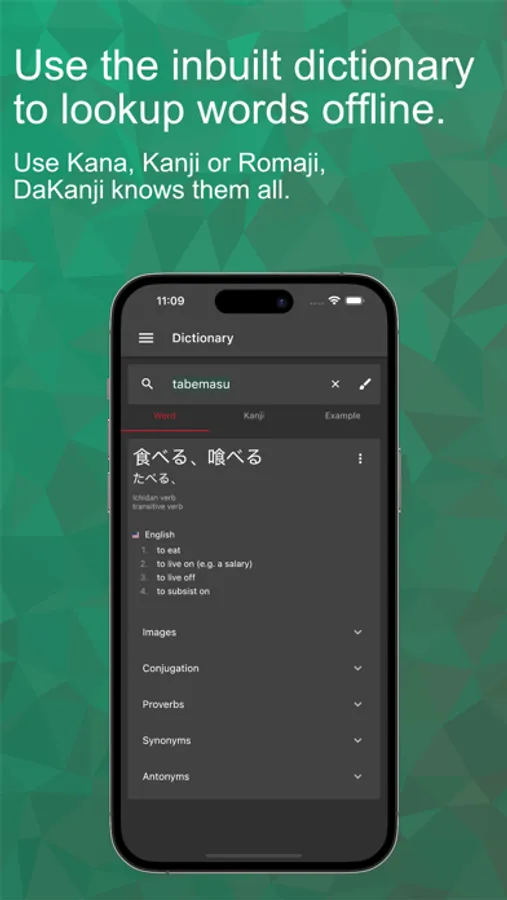 * Recognize 6500+ Kanji and all Kana offline by just drawing them