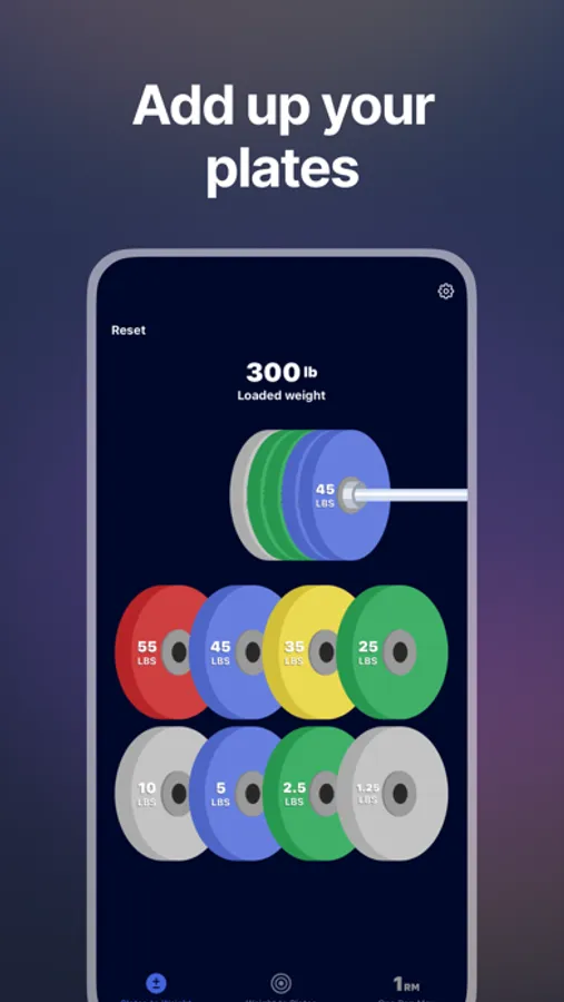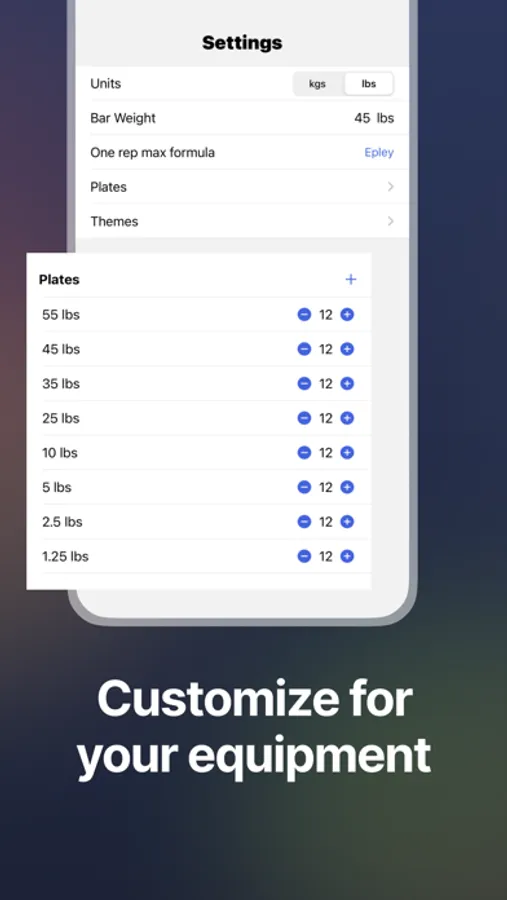 - Customize the weights and quantities of plates available
