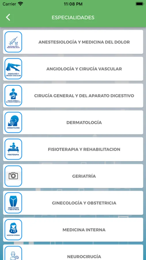 Podremos seleccionar el estado y la ciudad y nos darán las categorías y especialidades y en cada uno de ellos,