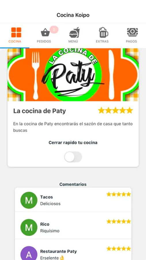 Aplicación para gestión de tu cocina en Koipo, en ella podrás recibir tus pedidos, poner tiempo, entregar ademas de poder crear, editar y eliminar platillos a tu gusto. Recuerda que la suscripción Koipo es totalmente gratuita y solo aplica para cocinas ubicadas en el municipio De Santiago Papasquiaro