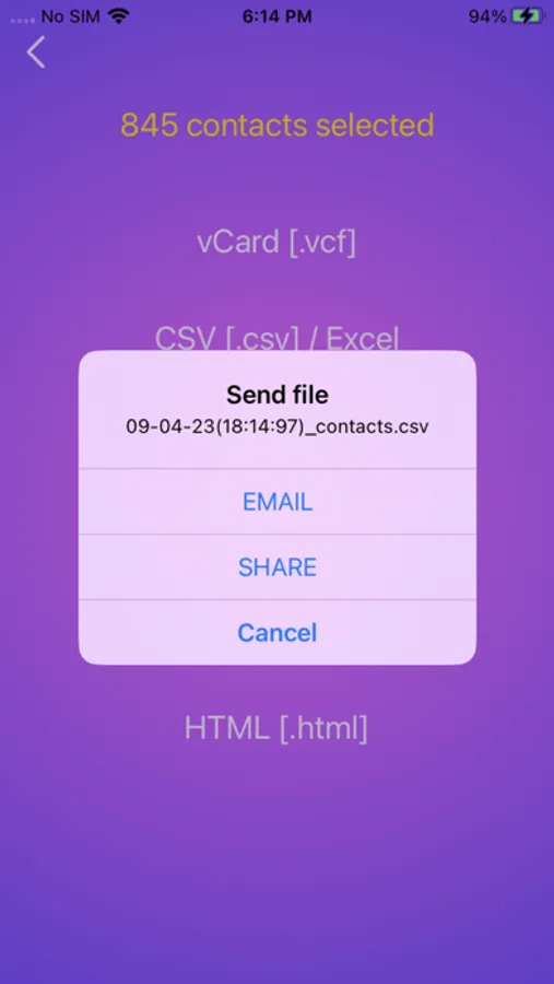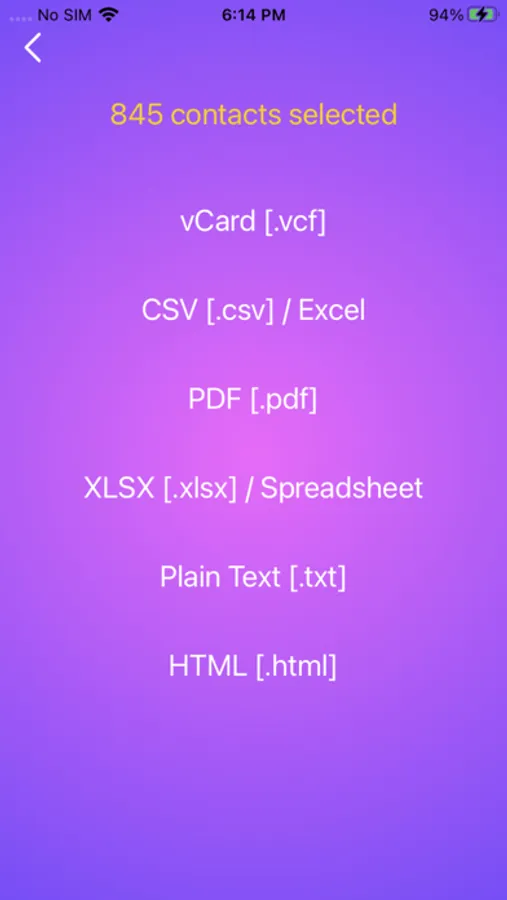 Multiple Export Formats: Choose from various export formats, such as PDF, VCF (vCard), XLSX (Excel), CSV (Comma-Separated Values), and TXT (Text), to suit your preferences and compatibility with other devices and applications.