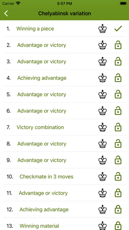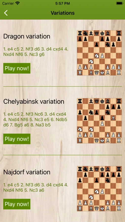 Free version of the application "Combinations in the Sicilian Defense" contains 30 interesting exercises for checkmating the King, achieving an advantage, winning pieces. In the full version 240 tasks are waiting for you.