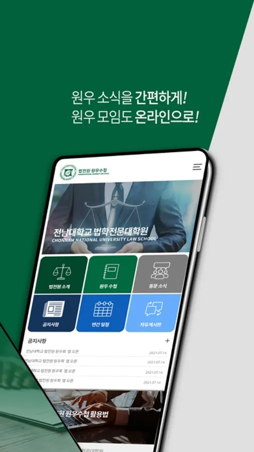 전남대학교 법학전문대학원 원우/동문의 소식과 정보를 열람할 수 있는 모바일 수첩 어플리케이션입니다.