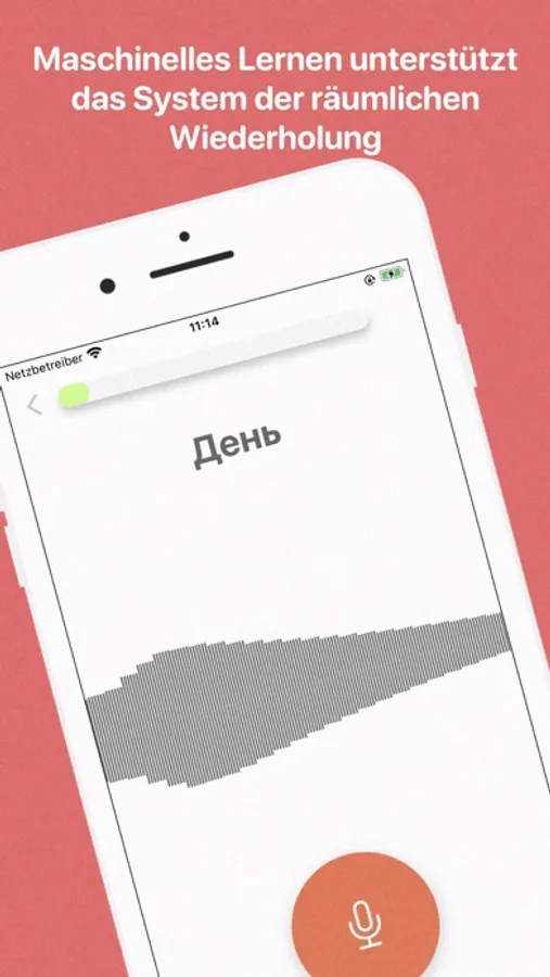 Wir beginnen mit einem wissenschaftlich erprobten Raum-Wiederholungs-System und treiben dieses System mit Hilfe von maschinellen Lernalgorithmen an die Grenzen. "Russisch lernen" beobachtet kontinuierlich deine Lösungen zu Aufgaben, um dir somit die besten Übungen herauszusuchen und so die Wörter auszuwählen, die du lernen musst. Du wiederholst die Wörter zum richtigen Zeitpunkt und so oft wie nötig, um eine Lektion wirklich zu verinnerlichen. Es ist allgemein bekannt, dass du besser lernst, wenn du mehr Verbindungen zu den Inhalten in verschiedenen Teilen deines Gehirns hast. Du lernst durch das häufige Zeigen visueller Bilder und Audio-Präsentationen, wie du den Inhalt vollständig verinnerlichen kannst. Die Aussprache der Wörter, wie sie in Sätzen verwendet werden, sogar die Körperbewegung - all diese Faktoren tragen zu deiner Lerneffizienz bei.