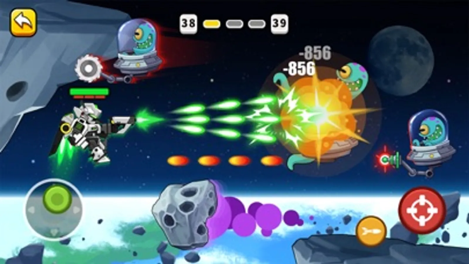 Come on,Mech Warrior!Use your laser cannon to destroy them.