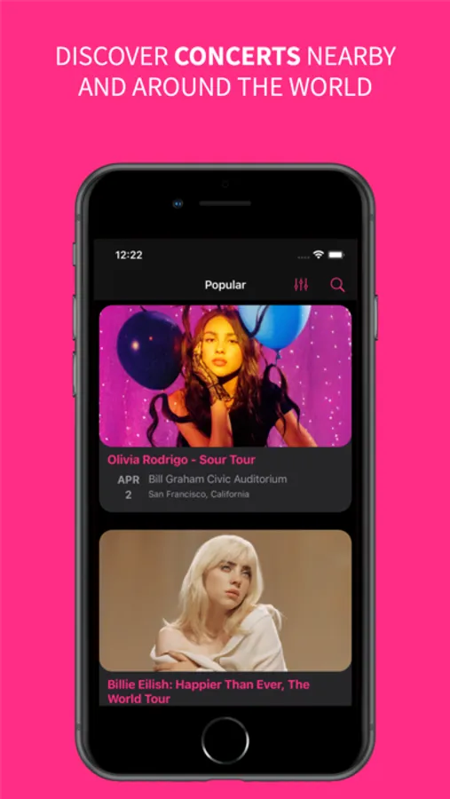 Do you want to find the hottest concert? Or maybe see what concerts are playing tonight? Find millions of concerts in town and around the world. Discover new music with the hottest concerts. Browse upcoming concerts for any city. Find the music that moves you!