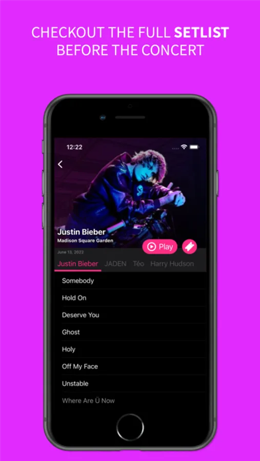 Check out the upcoming concert setlist for your artists or bands in town. See which of your favorite songs are being played at your favorite artist and bands next concert.