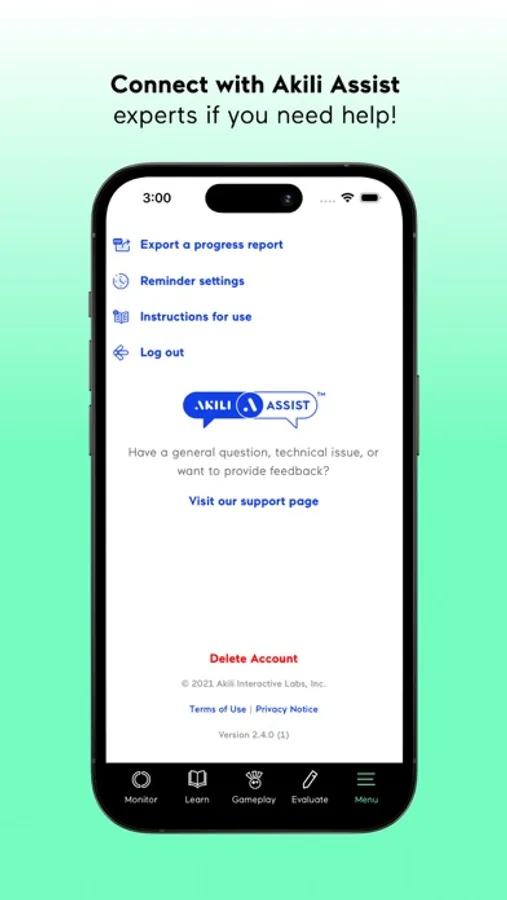 - GET SUPPORT — Having an issue? The app can help connect you to our Akili Assist® support team.
