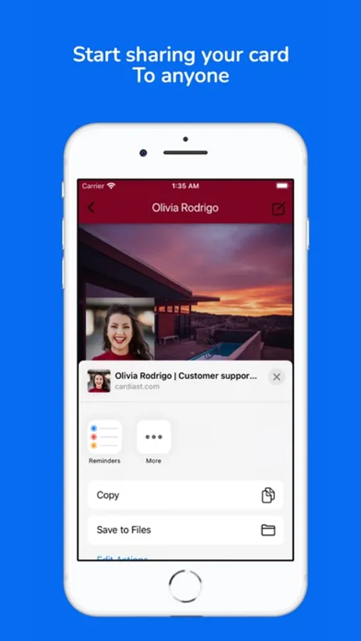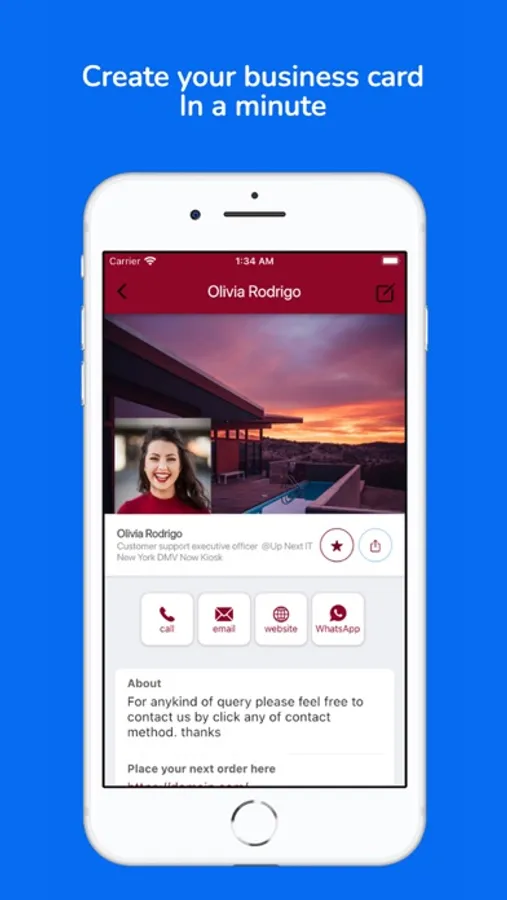 You can easily create your business card from scratch or easily select a ready template. You can also share your business card with WhatsApp, Facebook, Text, Email to any other platform easily from our app.
