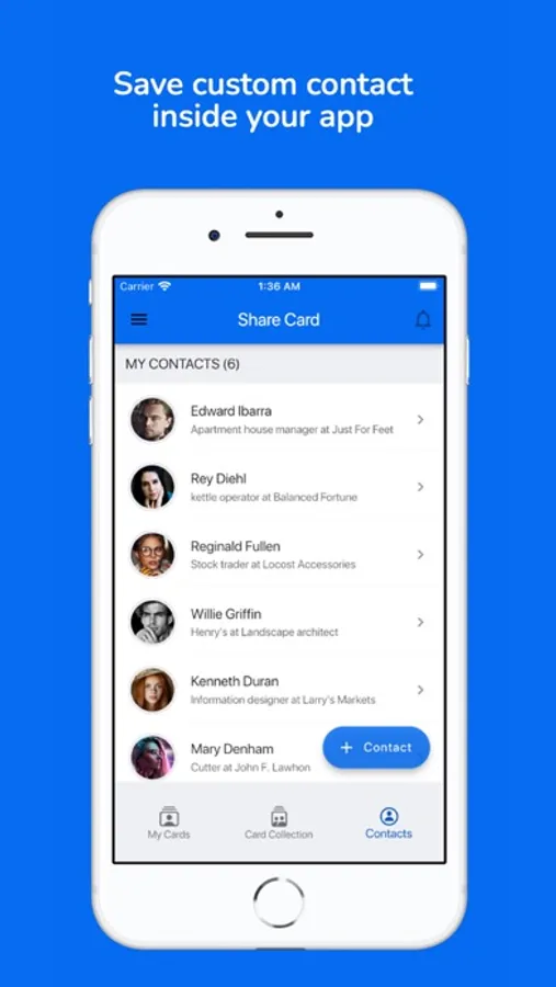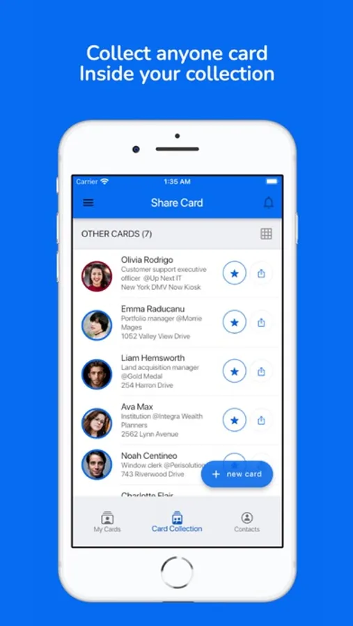 This is the best feature on this app. You will start to get all prospects' contact info after sharing your card. You can easily access all prospect information from prospects of our App to promote products or contact them.