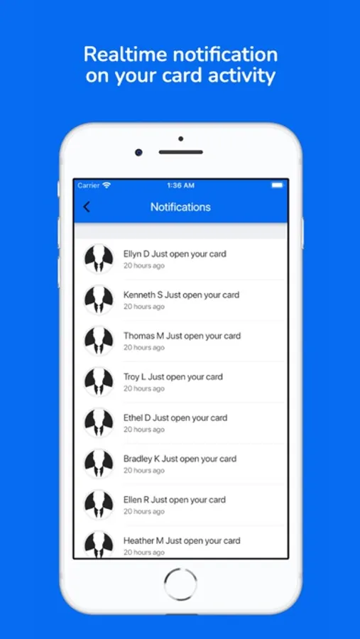 After sharing, you will start to get your card activity update by notification directly to your phone. So you will be always keeping track of what is happening with your business card.