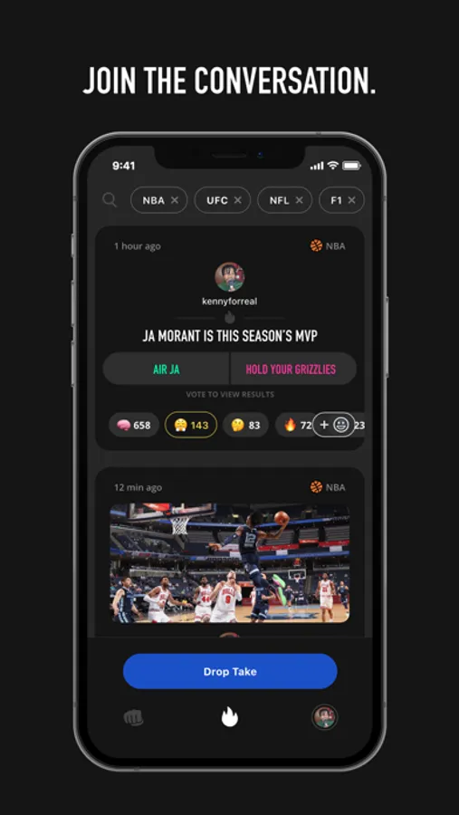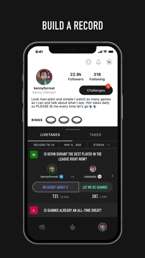 LiveTake is the home for sports banter. Battle your friends and opponents in live conversations, drop or vote on the hottest takes, and track your success in your profile. Become a GOAT and separate yourself from the pack.