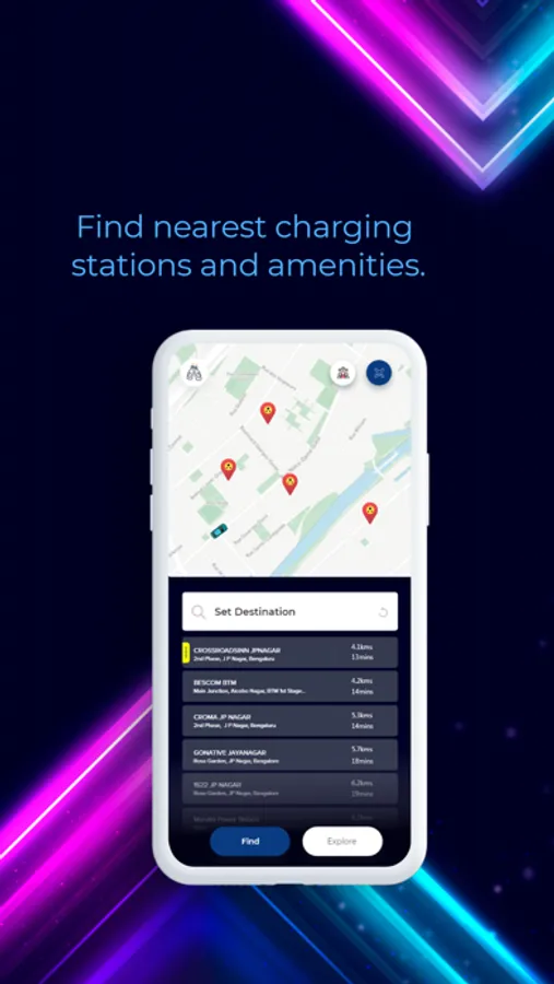 • Get the detailed information of the particular charging station by clicking on the list or icon on the map.