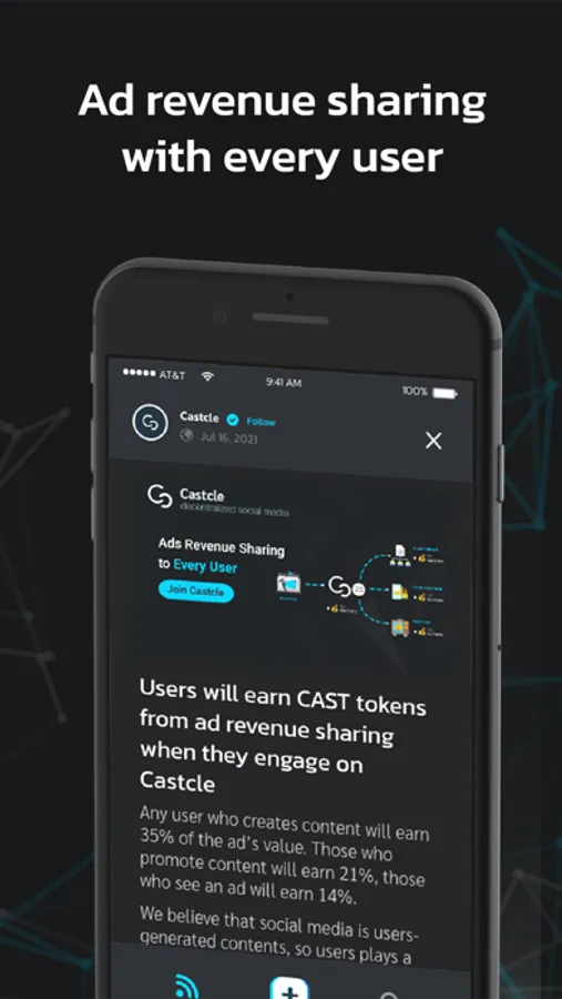 Earn CAST tokens from ad revenue sharing when you engage on Castcle