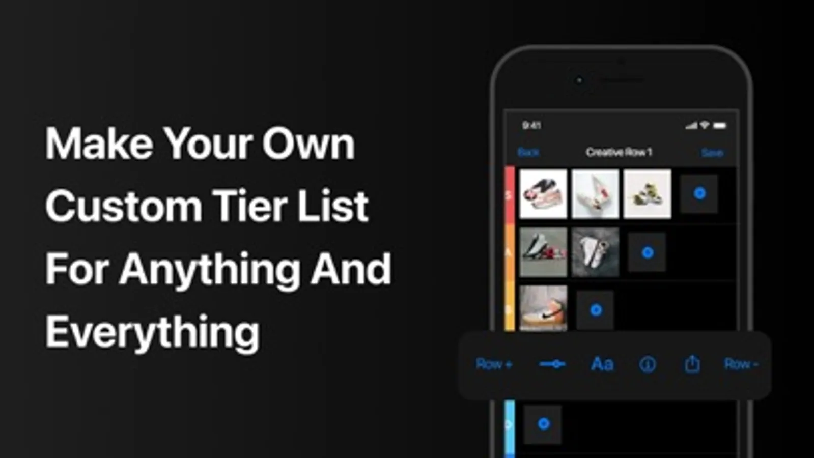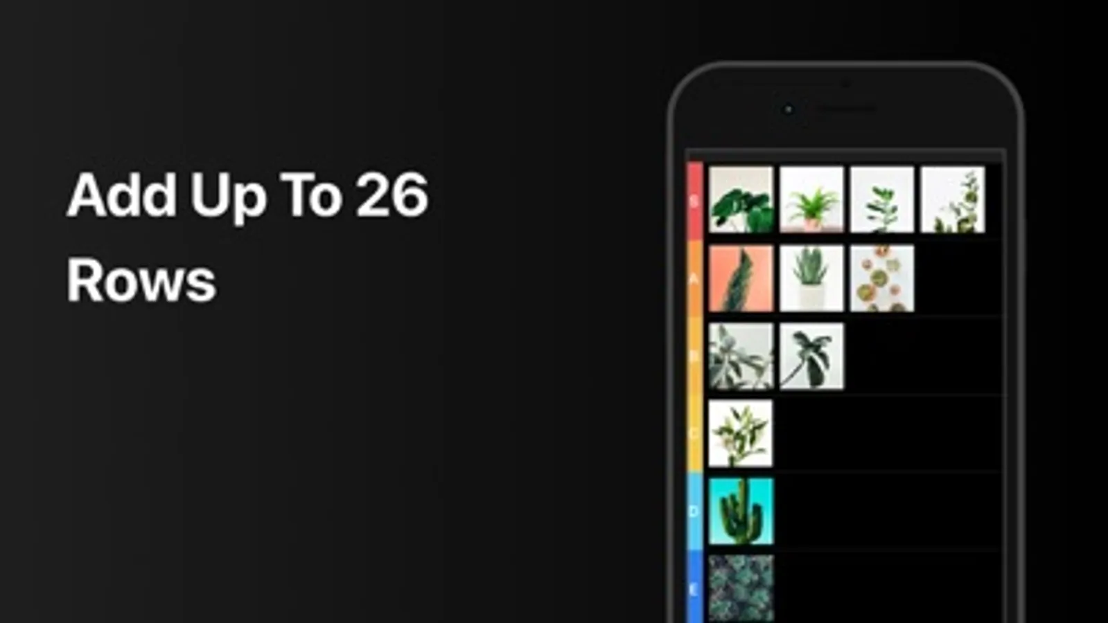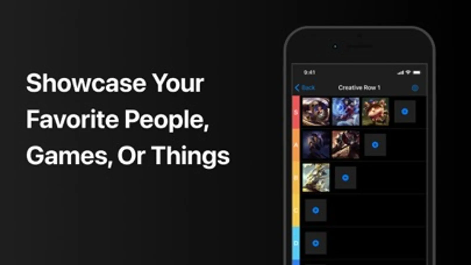 Create tier lists for any game. Add up to 26 rows, add photos and then export list to your photo gallery. Choose any color for tiers. Save tier lists within the app and use them later.