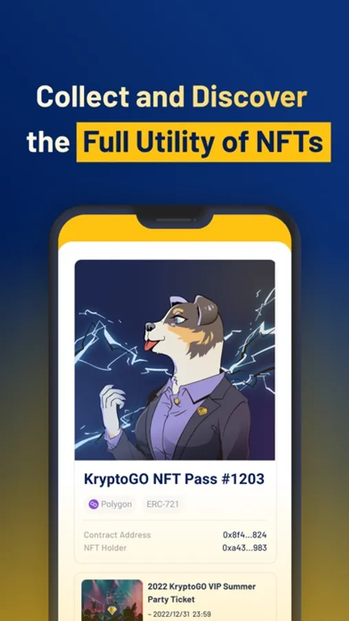 - Receive NFT airdrops straight to your wallet associated with your phone. Your KryptoGO identity serves as your Web3 passport
