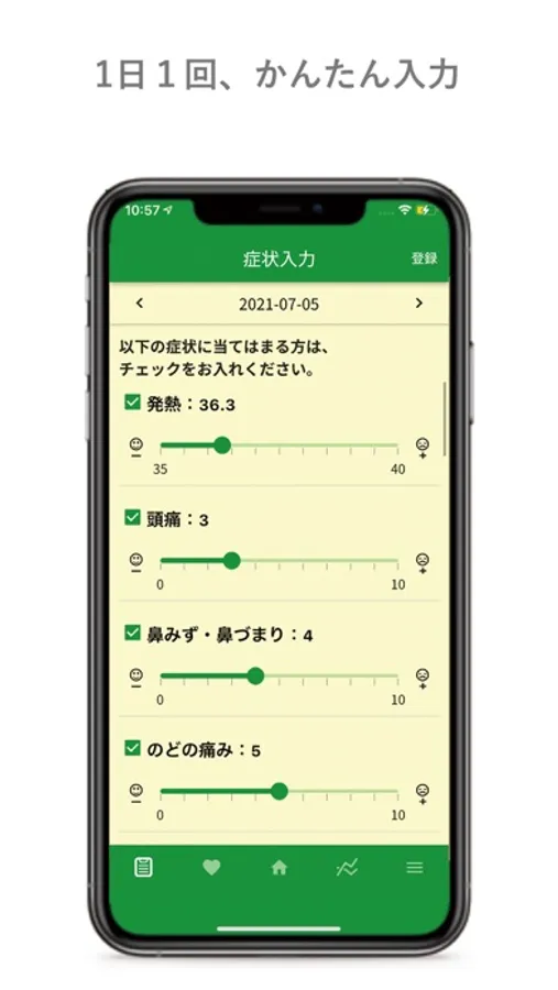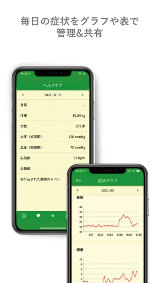 日々の体調やウェアラブル・センサーなどの、あなたの健康に関する情報を日記のように記録することができます。