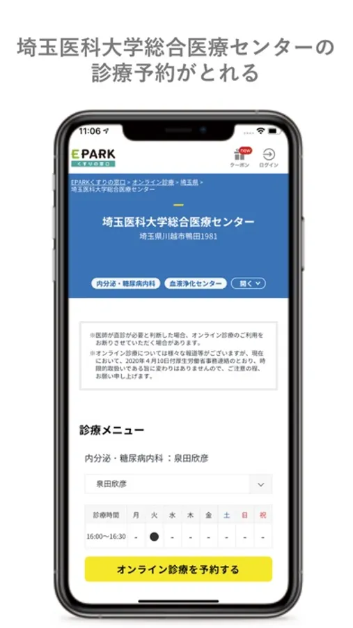 ※オンライン診療予約、地域医療連携サービス検索:ver.1.0.0では埼玉医科大学総合医療センターのみ対応