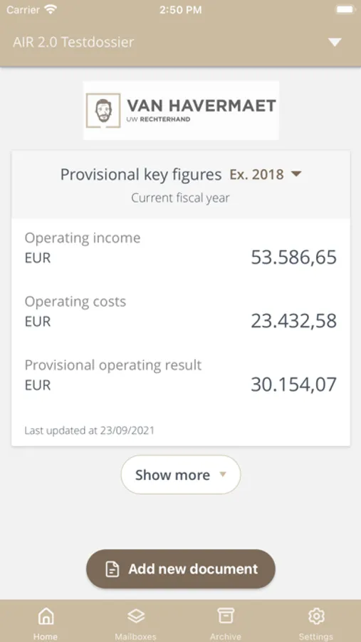 You can also quickly check your company’s key figures, mailboxes and archive.