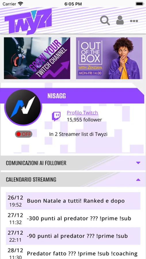Al lancio della piattaforma, Twyzi includerà, oltre all’italiano, due delle lingue più parlate al mondo, inglese e spagnolo. Al proprio interno, l’utente potrà navigare facilmente il palinsesto Twitch, aggiornato in tempo reale direttamente dagli streamer, e rimanere sempre aggiornato tramite un sistema di streaming list e notifiche push, così da non perdere alcuna diretta dei propri talent preferiti.