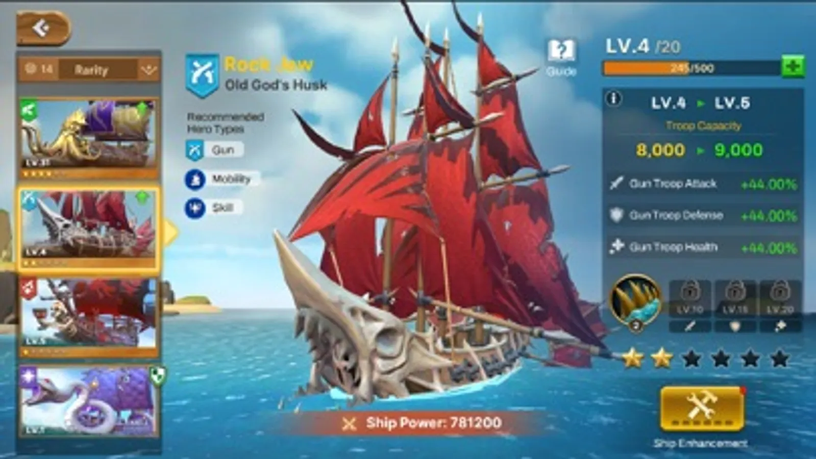 Call upon dozens of epic ships which will serve as your trump card on the battlefield, from La Niña and Rock Jaw to The Guardian and the Vikings Nordic Long Ship.