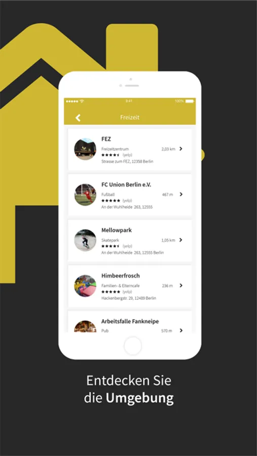 Informieren Sie sich z.B. über Geschäfte, Ärzte, Erstatten und über die Öffnungszeiten in Ihrer unmittelbarer Umgebung.