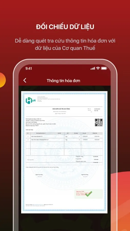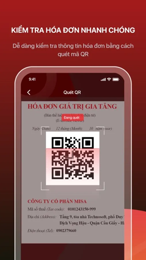 Ứng dụng cho phép kiểm tra hóa đơn trên tổng cục thuế.