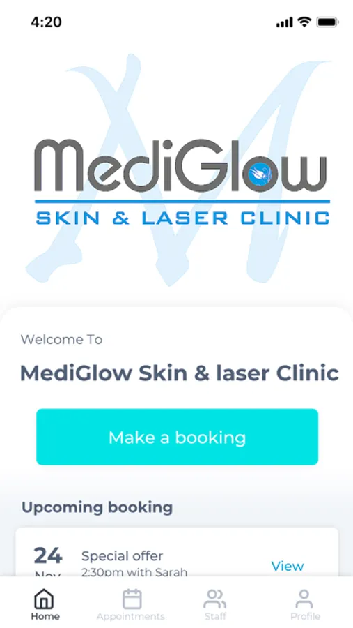 The MediGlow Skin & laser Clinic app makes booking your appointments and managing your loyalty points even easier. You're just a few taps away from feeling good and looking great!