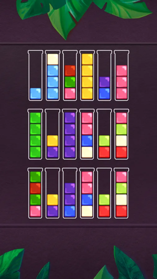 Sort mode: sort falling colored blocks in tubes the way all the same colored blocks will stay in the same tube;