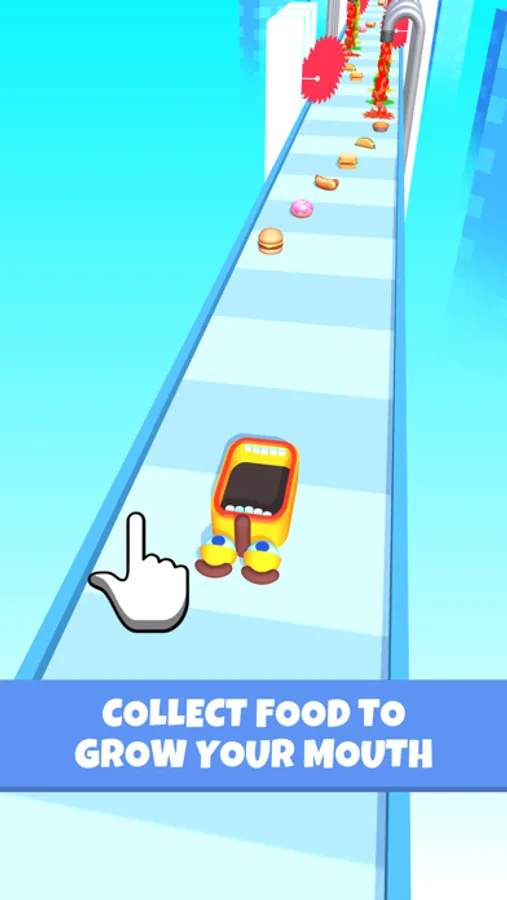 - Eat delicious food to stack front and get a bigger mouth!